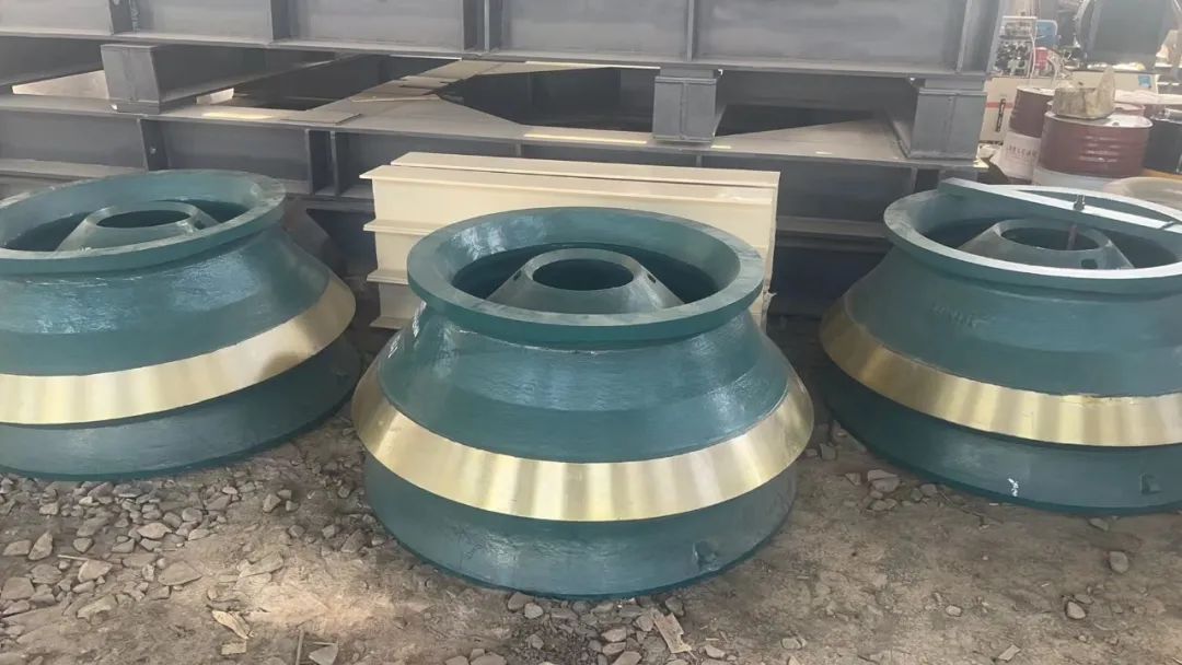 异物进入破碎腔(过铁等)会使衬板变形甚至破裂。